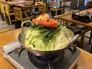 おすすめは、博多明太モツ鍋で3種類の味噌をブレンドしたスープとピリッとした明太子がたまりません。